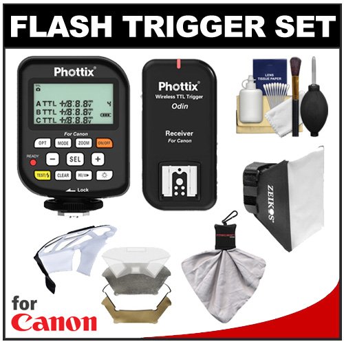Phottix Odin Wireless TTL Flash Trigger Set with Soft Box + Flash Diffuser + Cleaning Kit for Canon Rebel T1i, T2i, T3i, T3, EOS 60D, 7D, 5D, 1D, 1Ds & 1D X MARK II III IV Digital SLR Cameras for Sale - Review & Buy at Cheap Price